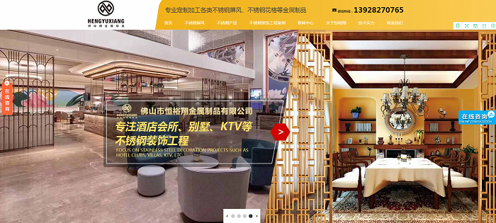 佛山市恒裕翔金屬制品有限公司是一家集設計,加工,銷售為一體的整合型的不銹鋼制造商,生產加工經驗相當豐富。公司秉著以質量求發展,以誠信贏天下的宗旨,現有高檔真空離子散件電鍍爐2臺,6米剪折刨設備,專業加工銷售不銹鋼非標制品為主,主要生產各種不銹鋼裝飾屏風,酒柜,KTV茶幾,展示架,博古架,欄桿扶手,不銹鋼拉手,不銹鋼雕塑,金屬藝術品,鋁銅雕塑制品,酒店家具配套五金,承接:酒店,會所,別墅,KTV,不銹鋼裝飾工程。