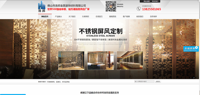 佛山市浩邦金屬裝飾材料有限公司產品經國家防火建筑材料質量監督檢驗中心抽檢,全部項目符合標準,并被建設部中國建筑裝飾協會建筑五金委員會評為工程建筑選用產品,連續國家檢測達標產品等榮譽稱號,并通過ISO9001-2000國際質量管理體系認證,中國優秀綠色環保產品證書,建立了一套完善的質量管理體系。浩邦擁有一班技術熟練、經驗豐富的車間生產技術人員和設計師團隊。