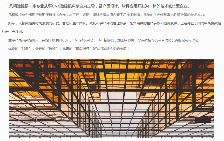 凡精數控與臺灣同行長期保持技術合作,從工藝、裝配、調試全部應用臺灣工廠技術制造,多年的生產經驗富裕凡精雄厚的技術實力。