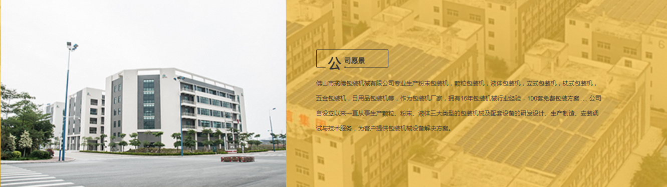 佛山市攬德包裝機械有限公司專業生產粉末包裝機,顆粒包裝機,液體包裝機,立式包裝機,枕式包裝機,五金包裝機,日用品包裝機等,作為包裝機廠家,擁有16年包裝機械行業經驗,100套免費包裝方案..... 公司自設立以來一直從事生產顆粒、粉末、液體三大類型的包裝機械及配套設備的研發設計、生產制造、安裝調試與技術服務,為客戶提供包裝機械設備解決方案。