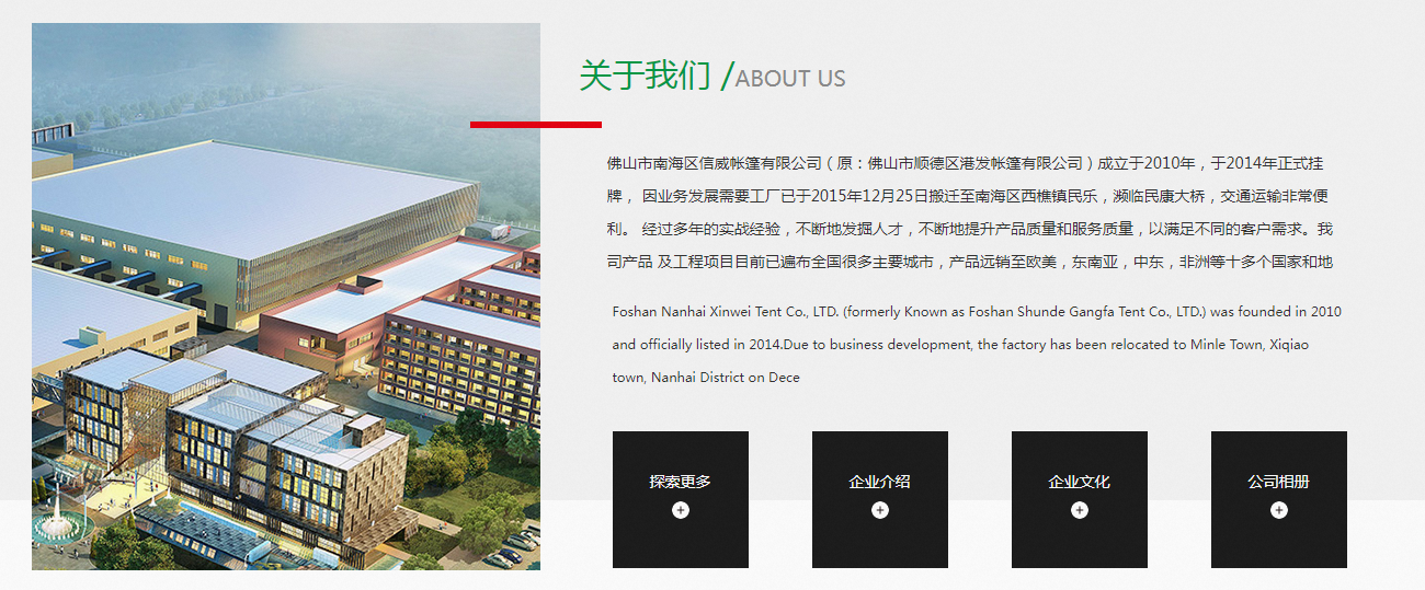 今天來(lái)分享一個(gè)大型帳篷網(wǎng)站建設(shè)案例——佛山市南海區(qū)信威帳篷有限公司