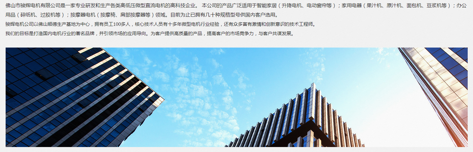 今天來分享一個低壓微型直流電機網(wǎng)站設(shè)計案例——佛山市駿輝電機有限公司