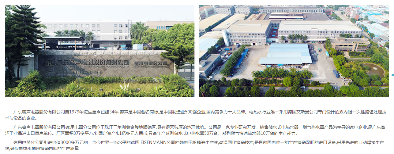 廣東容聲電器股份有限公司自1979年誕生至今已經(jīng)34年,容聲是制造業(yè)500強(qiáng)企業(yè),國內(nèi)競爭力品牌。電熱水采用艾斯曼公司專門設(shè)計(jì)的雙內(nèi)膽一次性搪瓷處理技術(shù)與設(shè)備的企業(yè)。