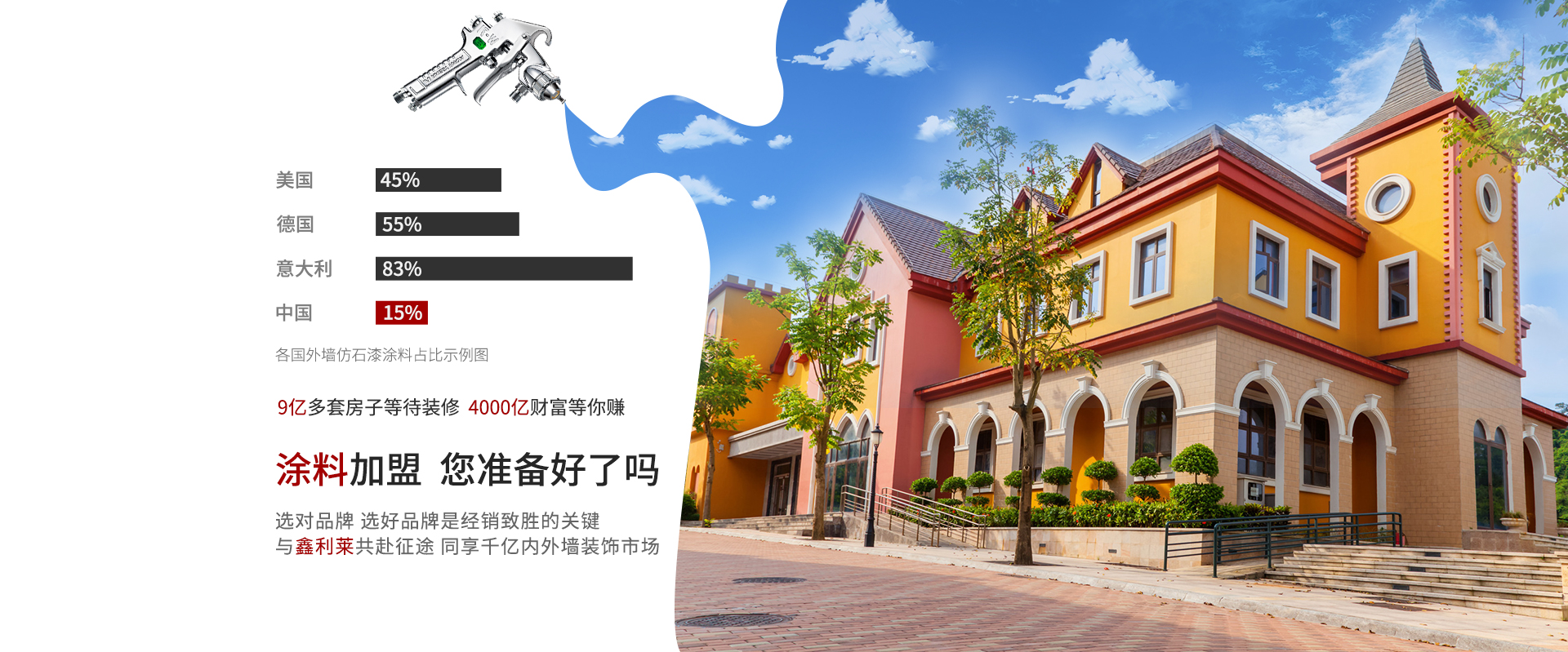 企業(yè)先后獲得“涂料行業(yè)品牌”、“建筑工程重點(diǎn)品牌”、“展播品牌”等榮譽(yù)。主要產(chǎn)品有水包砂5D仿大理石漆、水包水、藝術(shù)漆、真石漆、新型節(jié)能水性涂料、膩?zhàn)臃鄣葍?nèi)外墻涂料。公司一直致力于現(xiàn)代裝飾涂料的研究與開(kāi)發(fā),其中全新一代水性米氟碳涂料是公司未來(lái)發(fā)展戰(zhàn)略的重點(diǎn)。